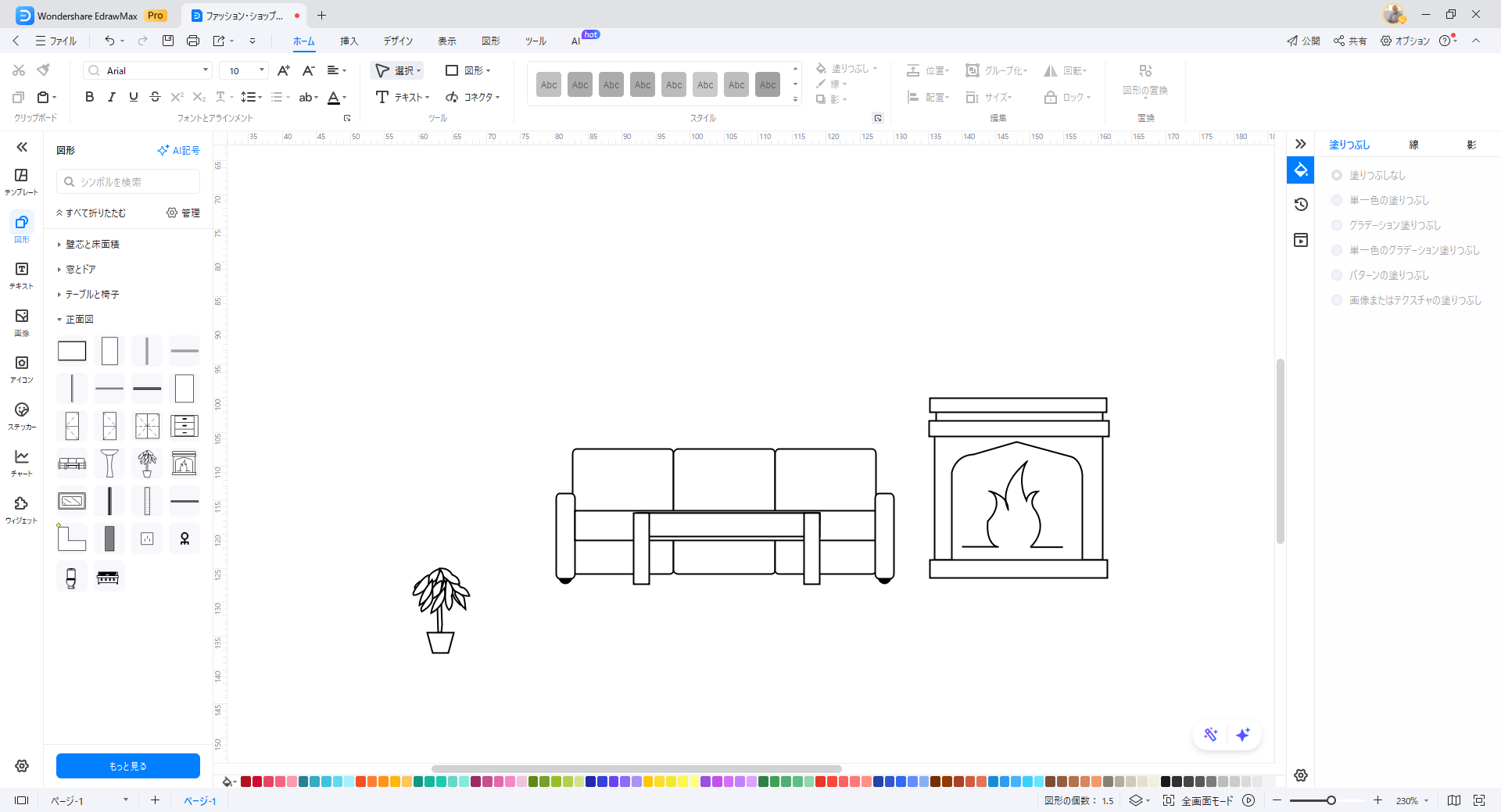 Nano Bananaで生成した画像を参考にしながら、EdrawMaxで正確な立面図を作成することで、実務でも使える品質の図面を効率よく作成できます。