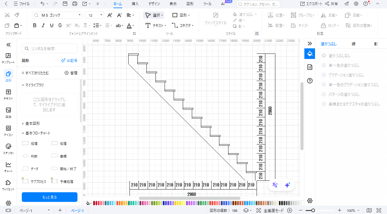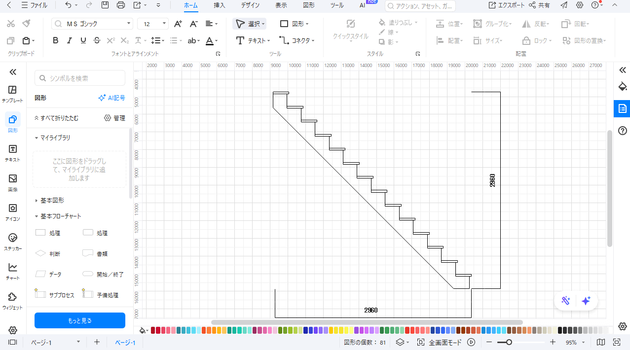 次にAI生成によって階段断面図を作成する場合についてです。(EdrawMaxのAI図面生成機能を活用します。)