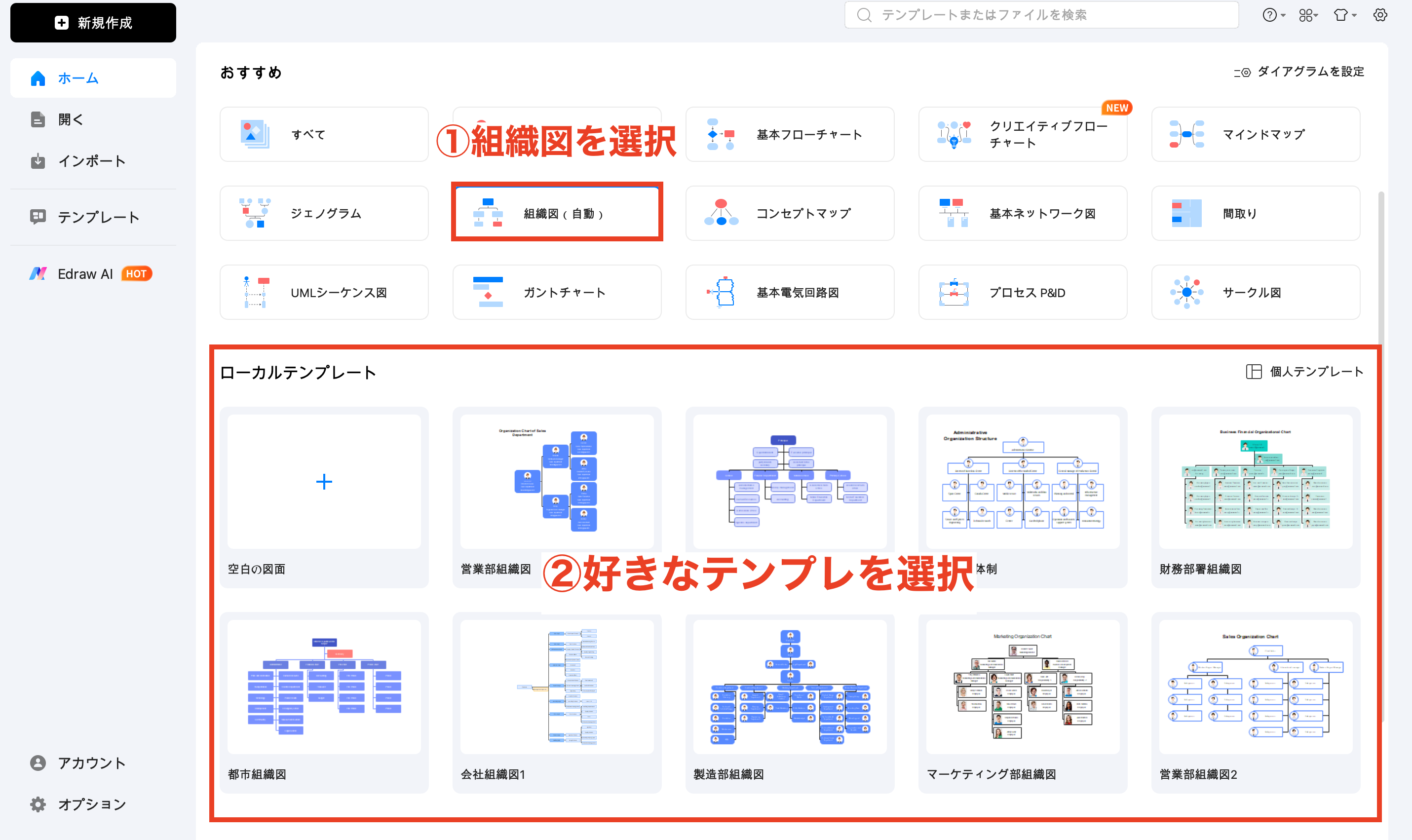 EdrawMaxで組織図を作成する最大の魅力は、豊富なテンプレート、入力したデータからの自動作成機能、そして多彩な共有・エクスポートのオプションにあります。