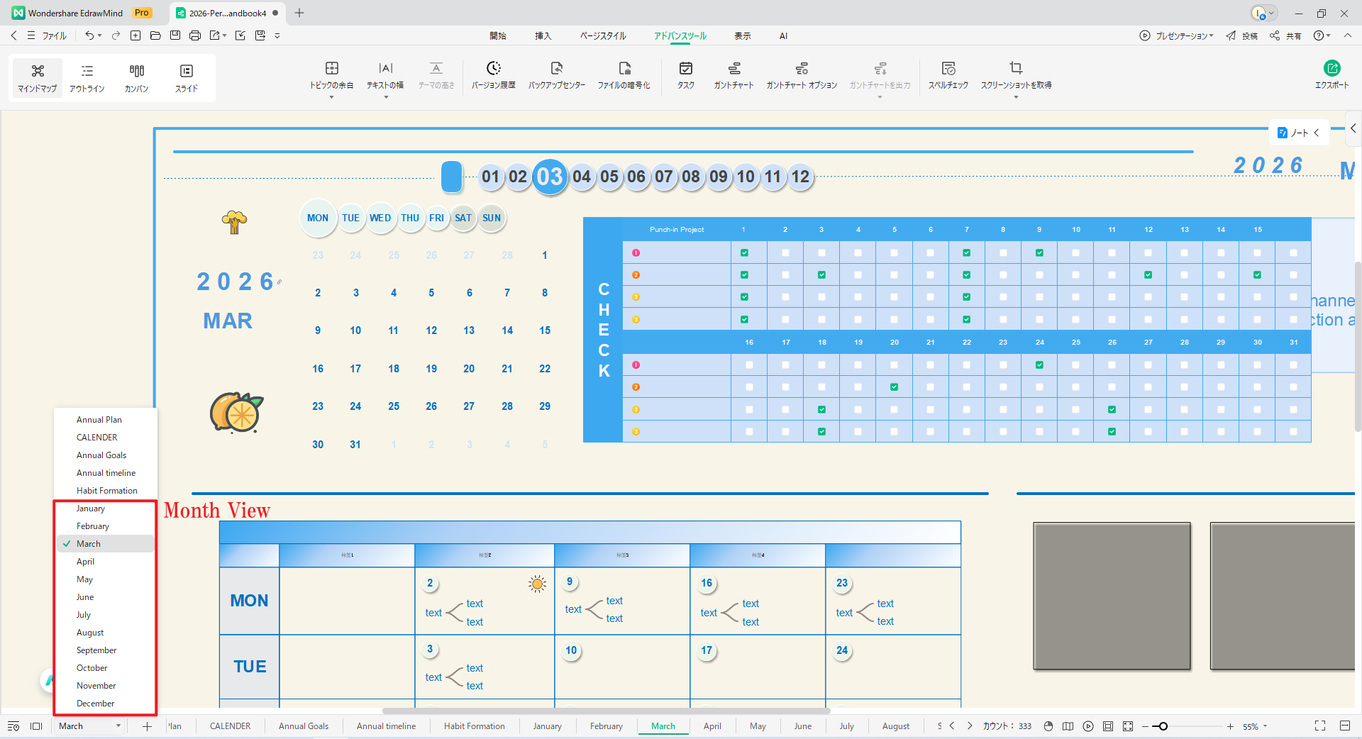 2026年のスケジュール管理に向けて、月ごとに使えるかわいいカレンダーテンプレートもご用意しました。EdrawMindでぜひご活用ください。